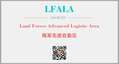 上述内容是“Land Forces Advanced Logistic Area”作为“LFALA”的缩写,解释为“陆军先进后勤区”时的信息,以及英文缩略词LFALA所代表的英文单词,其对应的中文拼音、详细解释以及在英文中的流行度和相关分类、应用领域及应用示例等。