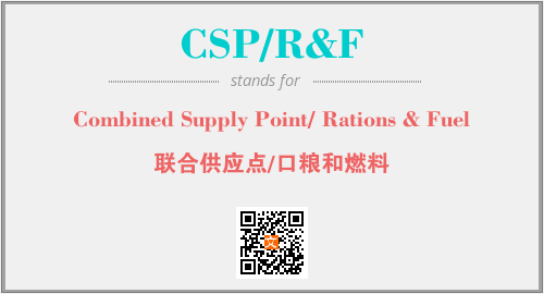 英文缩略词“CSP/R&F”经常作为“Combined Supply Point/ Rations & Fuel”的英文缩写来使用,中文表示:“联合供应点/口粮和燃料”。本文将详细介绍英文缩写词CSP/R&F所代表英文单词,其对应的中文拼音、详细解释以及在英语中的流行度。此外,还有关于缩略词CSP/R&F的分类、应用领域及相关应用示例等。