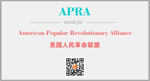 以上为American Popular Revolutionary Alliance英文缩略词APRA的中文解释,以及该英文缩写在英语的流行度、分类和应用领域方面的信息。