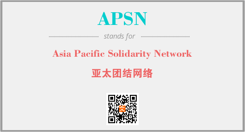 上述内容是“Asia Pacific Solidarity Network”作为“APSN”的缩写,解释为“亚太团结网络”时的信息,以及英文缩略词APSN所代表的英文单词,其对应的中文拼音、详细解释以及在英文中的流行度和相关分类、应用领域及应用示例等。