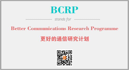 上述内容是“Better Communications Research Programme”作为“BCRP”的缩写,解释为“更好的通信研究计划”时的信息,以及英文缩略词BCRP所代表的英文单词,其对应的中文拼音、详细解释以及在英文中的流行度和相关分类、应用领域及应用示例等。