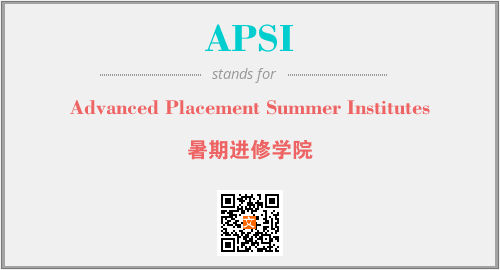 英文缩略词“APSI”经常作为“Advanced Placement Summer Institutes”的英文缩写来使用,中文表示:“暑期进修学院”。本文将详细介绍英文缩写词APSI所代表英文单词,其对应的中文拼音、详细解释以及在英语中的流行度。此外,还有关于缩略词APSI的分类、应用领域及相关应用示例等。
