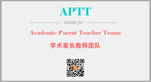 以上为Academic Parent Teacher Teams英文缩略词APTT的中文解释,以及该英文缩写在英语的流行度、分类和应用领域方面的信息。