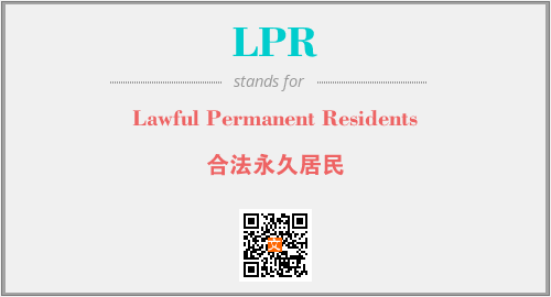 以上为Lawful Permanent Residents英文缩略词LPR的中文解释,以及该英文缩写在英语的流行度、分类和应用领域方面的信息。