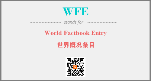 上述内容是“World Factbook Entry”作为“WFE”的缩写,解释为“世界概况条目”时的信息,以及英文缩略词WFE所代表的英文单词,其对应的中文拼音、详细解释以及在英文中的流行度和相关分类、应用领域及应用示例等。
