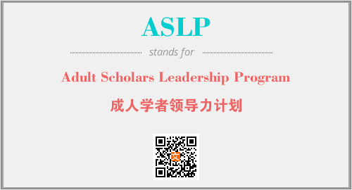 上述内容是“Adult Scholars Leadership Program”作为“ASLP”的缩写,解释为“成人学者领导力计划”时的信息,以及英文缩略词ASLP所代表的英文单词,其对应的中文拼音、详细解释以及在英文中的流行度和相关分类、应用领域及应用示例等。