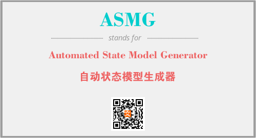 上述内容是“Automated State Model Generator”作为“ASMG”的缩写,解释为“自动状态模型生成器”时的信息,以及英文缩略词ASMG所代表的英文单词,其对应的中文拼音、详细解释以及在英文中的流行度和相关分类、应用领域及应用示例等。