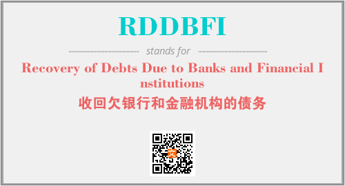 上述内容是“Recovery of Debts Due to Banks and Financial Institutions”作为“RDDBFI”的缩写,解释为“收回欠银行和金融机构的债务”时的信息,以及英文缩略词RDDBFI所代表的英文单词,其对应的中文拼音、详细解释以及在英文中的流行度和相关分类、应用领域及应用示例等。
