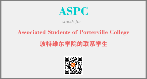 上述内容是“Associated Students of Porterville College”作为“ASPC”的缩写,解释为“波特维尔学院的联系学生”时的信息,以及英文缩略词ASPC所代表的英文单词,其对应的中文拼音、详细解释以及在英文中的流行度和相关分类、应用领域及应用示例等。
