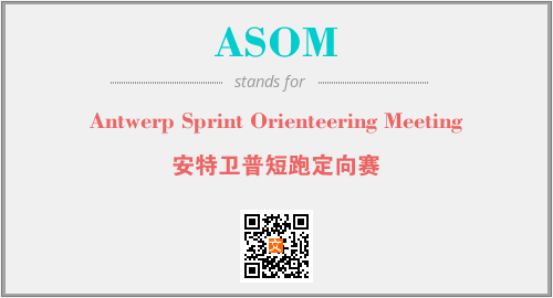 英文缩略词“ASOM”经常作为“Antwerp Sprint Orienteering Meeting”的英文缩写来使用,中文表示:“安特卫普短跑定向赛”。本文将详细介绍英文缩写词ASOM所代表英文单词,其对应的中文拼音、详细解释以及在英语中的流行度。此外,还有关于缩略词ASOM的分类、应用领域及相关应用示例等。