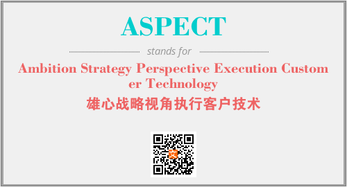 英文缩略词“ASPECT”经常作为“Ambition Strategy Perspective Execution Customer Technology”的英文缩写来使用,中文表示:“雄心战略视角执行客户技术”。本文将详细介绍英文缩写词ASPECT所代表英文单词,其对应的中文拼音、详细解释以及在英语中的流行度。此外,还有关于缩略词ASPECT的分类、应用领域及相关应用示例等。