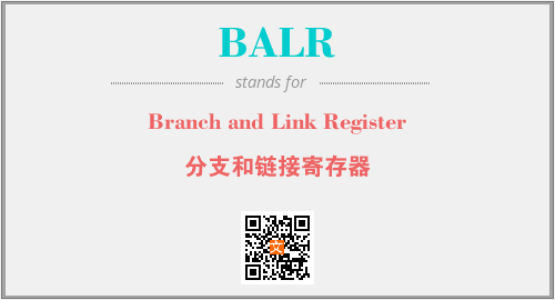 上述内容是“Branch and Link Register”作为“BALR”的缩写,解释为“分支和链接寄存器”时的信息,以及英文缩略词BALR所代表的英文单词,其对应的中文拼音、详细解释以及在英文中的流行度和相关分类、应用领域及应用示例等。