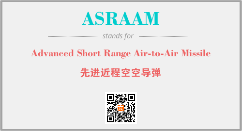 上述内容是“Advanced Short Range Air-to-Air Missile”作为“ASRAAM”的缩写,解释为“先进近程空空导弹”时的信息,以及英文缩略词ASRAAM所代表的英文单词,其对应的中文拼音、详细解释以及在英文中的流行度和相关分类、应用领域及应用示例等。