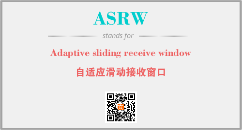 上述内容是“Adaptive sliding receive window”作为“ASRW”的缩写,解释为“自适应滑动接收窗口”时的信息,以及英文缩略词ASRW所代表的英文单词,其对应的中文拼音、详细解释以及在英文中的流行度和相关分类、应用领域及应用示例等。