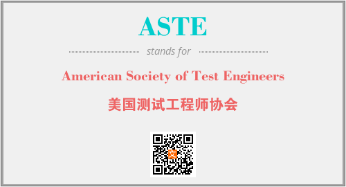 英文缩略词“ASTE”经常作为“American Society of Test Engineers”的英文缩写来使用,中文表示:“美国测试工程师协会”。本文将详细介绍英文缩写词ASTE所代表英文单词,其对应的中文拼音、详细解释以及在英语中的流行度。此外,还有关于缩略词ASTE的分类、应用领域及相关应用示例等。