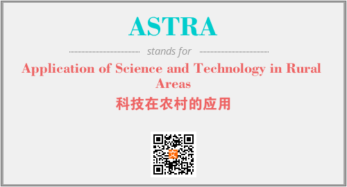 以上为Application of Science and Technology in Rural Areas英文缩略词ASTRA的中文解释,以及该英文缩写在英语的流行度、分类和应用领域方面的信息。