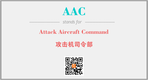 上述内容是“Attack Aircraft Command”作为“AAC”的缩写,解释为“攻击机司令部”时的信息,以及英文缩略词AAC所代表的英文单词,其对应的中文拼音、详细解释以及在英文中的流行度和相关分类、应用领域及应用示例等。