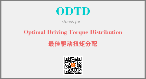 英文缩略词“ODTD”经常作为“Optimal Driving Torque Distribution”的英文缩写来使用,中文表示:“最佳驱动扭矩分配”。本文将详细介绍英文缩写词ODTD所代表英文单词,其对应的中文拼音、详细解释以及在英语中的流行度。此外,还有关于缩略词ODTD的分类、应用领域及相关应用示例等。