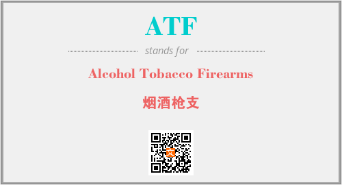 英文缩略词“ATF”经常作为“Alcohol Tobacco Firearms”的英文缩写来使用,中文表示:“烟酒枪支”。本文将详细介绍英文缩写词ATF所代表英文单词,其对应的中文拼音、详细解释以及在英语中的流行度。此外,还有关于缩略词ATF的分类、应用领域及相关应用示例等。