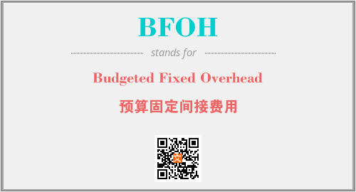 上述内容是“Budgeted Fixed Overhead”作为“BFOH”的缩写,解释为“预算固定间接费用”时的信息,以及英文缩略词BFOH所代表的英文单词,其对应的中文拼音、详细解释以及在英文中的流行度和相关分类、应用领域及应用示例等。