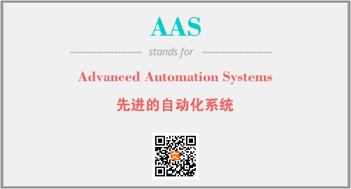 上述内容是“Advanced Automation Systems”作为“AAS”的缩写,解释为“先进的自动化系统”时的信息,以及英文缩略词AAS所代表的英文单词,其对应的中文拼音、详细解释以及在英文中的流行度和相关分类、应用领域及应用示例等。