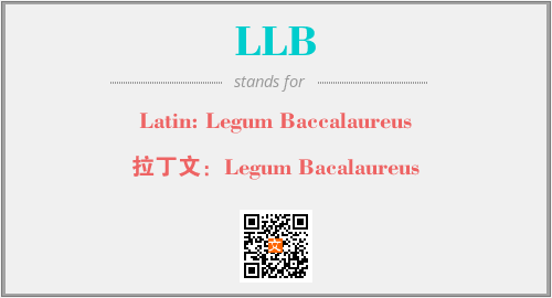 英文缩略词“LLB”经常作为“Latin: Legum Baccalaureus”的英文缩写来使用,中文表示:“拉丁文:Legum Bacalaureus”。本文将详细介绍英文缩写词LLB所代表英文单词,其对应的中文拼音、详细解释以及在英语中的流行度。此外,还有关于缩略词LLB的分类、应用领域及相关应用示例等。