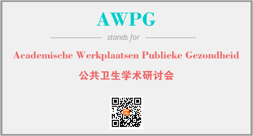 上述内容是“Academische Werkplaatsen Publieke Gezondheid”作为“AWPG”的缩写,解释为“公共卫生学术研讨会”时的信息,以及英文缩略词AWPG所代表的英文单词,其对应的中文拼音、详细解释以及在英文中的流行度和相关分类、应用领域及应用示例等。