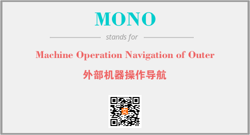 上述内容是“Machine Operation Navigation of Outer”作为“MONO”的缩写,解释为“外部机器操作导航”时的信息,以及英文缩略词MONO所代表的英文单词,其对应的中文拼音、详细解释以及在英文中的流行度和相关分类、应用领域及应用示例等。
