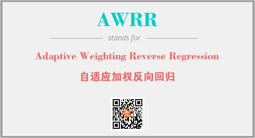 上述内容是“Adaptive Weighting Reverse Regression”作为“AWRR”的缩写,解释为“自适应加权反向回归”时的信息,以及英文缩略词AWRR所代表的英文单词,其对应的中文拼音、详细解释以及在英文中的流行度和相关分类、应用领域及应用示例等。