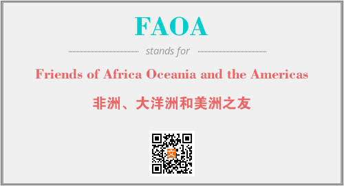 上述内容是“Friends of Africa Oceania and the Americas”作为“FAOA”的缩写,解释为“非洲、大洋洲和美洲之友”时的信息,以及英文缩略词FAOA所代表的英文单词,其对应的中文拼音、详细解释以及在英文中的流行度和相关分类、应用领域及应用示例等。