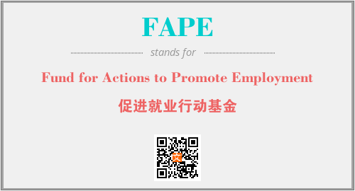 上述内容是“Fund for Actions to Promote Employment”作为“FAPE”的缩写,解释为“促进就业行动基金”时的信息,以及英文缩略词FAPE所代表的英文单词,其对应的中文拼音、详细解释以及在英文中的流行度和相关分类、应用领域及应用示例等。