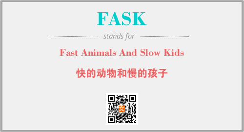 上述内容是“Fast Animals And Slow Kids”作为“FASK”的缩写,解释为“快的动物和慢的孩子”时的信息,以及英文缩略词FASK所代表的英文单词,其对应的中文拼音、详细解释以及在英文中的流行度和相关分类、应用领域及应用示例等。