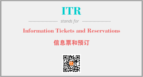 上述内容是“Information Tickets and Reservations”作为“ITR”的缩写,解释为“信息票和预订”时的信息,以及英文缩略词ITR所代表的英文单词,其对应的中文拼音、详细解释以及在英文中的流行度和相关分类、应用领域及应用示例等。