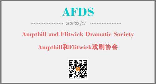 上述内容是“Ampthill and Flitwick Dramatic Society”作为“AFDS”的缩写,解释为“Ampthill和Flitwick戏剧协会”时的信息,以及英文缩略词AFDS所代表的英文单词,其对应的中文拼音、详细解释以及在英文中的流行度和相关分类、应用领域及应用示例等。