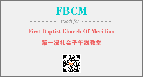 英文缩略词“FBCM”经常作为“First Baptist Church Of Meridian”的英文缩写来使用,中文表示:“第一浸礼会子午线教堂”。本文将详细介绍英文缩写词FBCM所代表英文单词,其对应的中文拼音、详细解释以及在英语中的流行度。此外,还有关于缩略词FBCM的分类、应用领域及相关应用示例等。