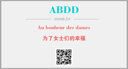 英文缩略词“ABDD”经常作为“Au bonheur des dames”的英文缩写来使用,中文表示:“为了女士们的幸福”。本文将详细介绍英文缩写词ABDD所代表英文单词,其对应的中文拼音、详细解释以及在英语中的流行度。此外,还有关于缩略词ABDD的分类、应用领域及相关应用示例等。