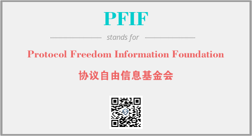 上述内容是“Protocol Freedom Information Foundation”作为“PFIF”的缩写,解释为“协议自由信息基金会”时的信息,以及英文缩略词PFIF所代表的英文单词,其对应的中文拼音、详细解释以及在英文中的流行度和相关分类、应用领域及应用示例等。