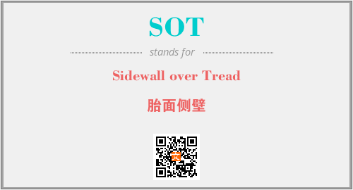 上述内容是“Sidewall over Tread”作为“SOT”的缩写,解释为“胎面侧壁”时的信息,以及英文缩略词SOT所代表的英文单词,其对应的中文拼音、详细解释以及在英文中的流行度和相关分类、应用领域及应用示例等。
