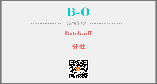 英文缩略词“B-O”经常作为“Batch-off”的英文缩写来使用,中文表示:“分批”。本文将详细介绍英文缩写词B-O所代表英文单词,其对应的中文拼音、详细解释以及在英语中的流行度。此外,还有关于缩略词B-O的分类、应用领域及相关应用示例等。