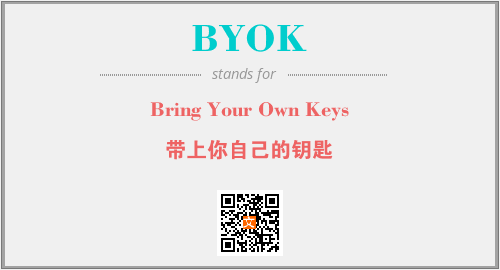 上述内容是“Bring Your Own Keys”作为“BYOK”的缩写,解释为“带上你自己的钥匙”时的信息,以及英文缩略词BYOK所代表的英文单词,其对应的中文拼音、详细解释以及在英文中的流行度和相关分类、应用领域及应用示例等。