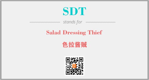 英文缩略词“SDT”经常作为“Salad Dressing Thief”的英文缩写来使用,中文表示:“色拉酱贼”。本文将详细介绍英文缩写词SDT所代表英文单词,其对应的中文拼音、详细解释以及在英语中的流行度。此外,还有关于缩略词SDT的分类、应用领域及相关应用示例等。