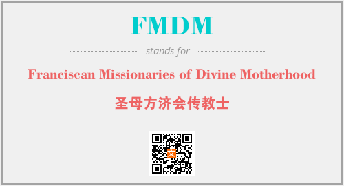 英文缩略词“FMDM”经常作为“Franciscan Missionaries of Divine Motherhood”的英文缩写来使用,中文表示:“圣母方济会传教士”。本文将详细介绍英文缩写词FMDM所代表英文单词,其对应的中文拼音、详细解释以及在英语中的流行度。此外,还有关于缩略词FMDM的分类、应用领域及相关应用示例等。