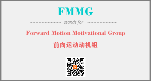上述内容是“Forward Motion Motivational Group”作为“FMMG”的缩写,解释为“前向运动动机组”时的信息,以及英文缩略词FMMG所代表的英文单词,其对应的中文拼音、详细解释以及在英文中的流行度和相关分类、应用领域及应用示例等。