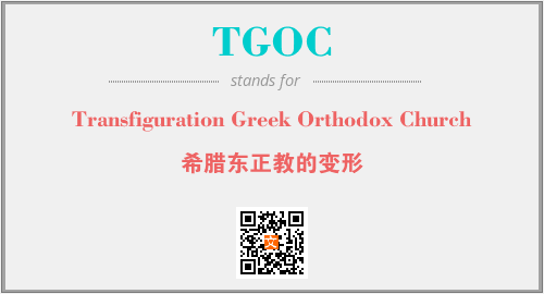 英文缩略词“TGOC”经常作为“Transfiguration Greek Orthodox Church”的英文缩写来使用,中文表示:“希腊东正教的变形”。本文将详细介绍英文缩写词TGOC所代表英文单词,其对应的中文拼音、详细解释以及在英语中的流行度。此外,还有关于缩略词TGOC的分类、应用领域及相关应用示例等。