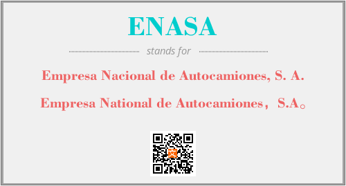 以上为Empresa Nacional de Autocamiones, S. A.英文缩略词ENASA的中文解释,以及该英文缩写在英语的流行度、分类和应用领域方面的信息。