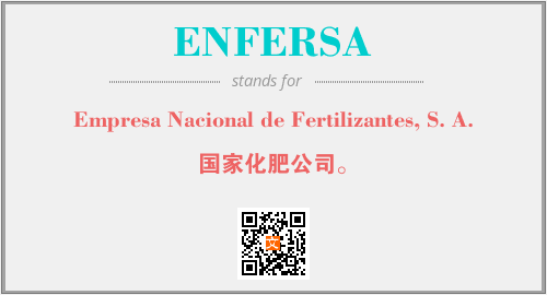 上述内容是“Empresa Nacional de Fertilizantes, S. A.”作为“ENFERSA”的缩写,解释为“国家化肥公司。”时的信息,以及英文缩略词ENFERSA所代表的英文单词,其对应的中文拼音、详细解释以及在英文中的流行度和相关分类、应用领域及应用示例等。