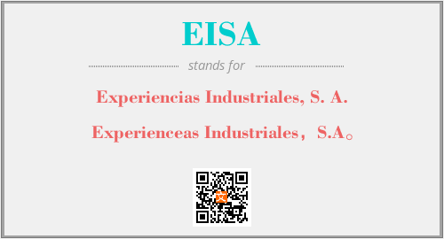 上述内容是“Experiencias Industriales, S. A.”作为“EISA”的缩写,解释为“Experienceas Industriales,S.A。”时的信息,以及英文缩略词EISA所代表的英文单词,其对应的中文拼音、详细解释以及在英文中的流行度和相关分类、应用领域及应用示例等。