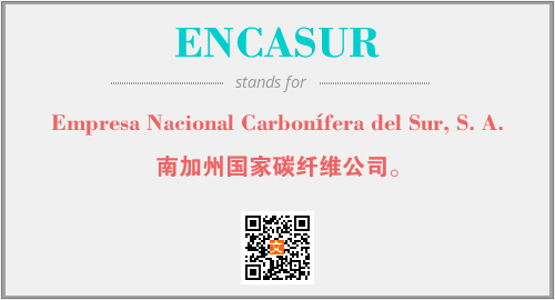 上述内容是“Empresa Nacional Carbonífera del Sur, S. A.”作为“ENCASUR”的缩写,解释为“南加州国家碳纤维公司。”时的信息,以及英文缩略词ENCASUR所代表的英文单词,其对应的中文拼音、详细解释以及在英文中的流行度和相关分类、应用领域及应用示例等。