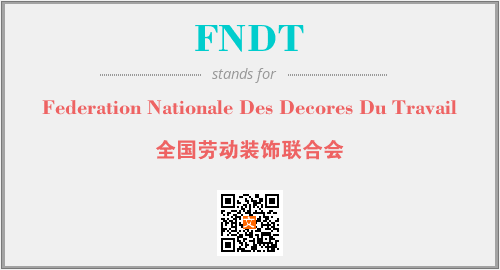 上述内容是“Federation Nationale Des Decores Du Travail”作为“FNDT”的缩写,解释为“全国劳动装饰联合会”时的信息,以及英文缩略词FNDT所代表的英文单词,其对应的中文拼音、详细解释以及在英文中的流行度和相关分类、应用领域及应用示例等。