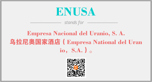 上述内容是“Empresa Nacional del Uranio, S. A.”作为“ENUSA”的缩写,解释为“乌拉尼奥国家酒店(Empresa National del Uranio,S.A.)。”时的信息,以及英文缩略词ENUSA所代表的英文单词,其对应的中文拼音、详细解释以及在英文中的流行度和相关分类、应用领域及应用示例等。